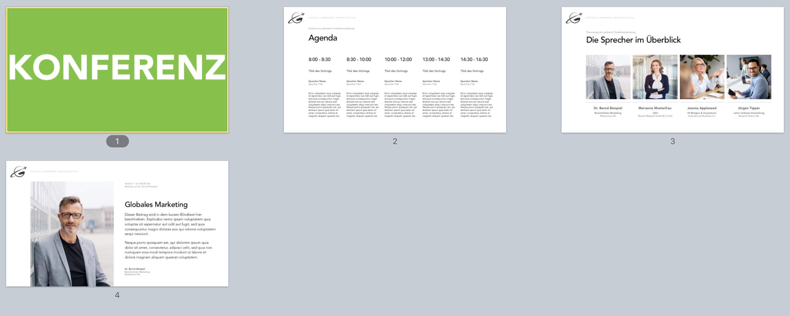2. Konferenzsprecher: Schlagzeile + Titel + 4x Foto, Name, Position, Firma