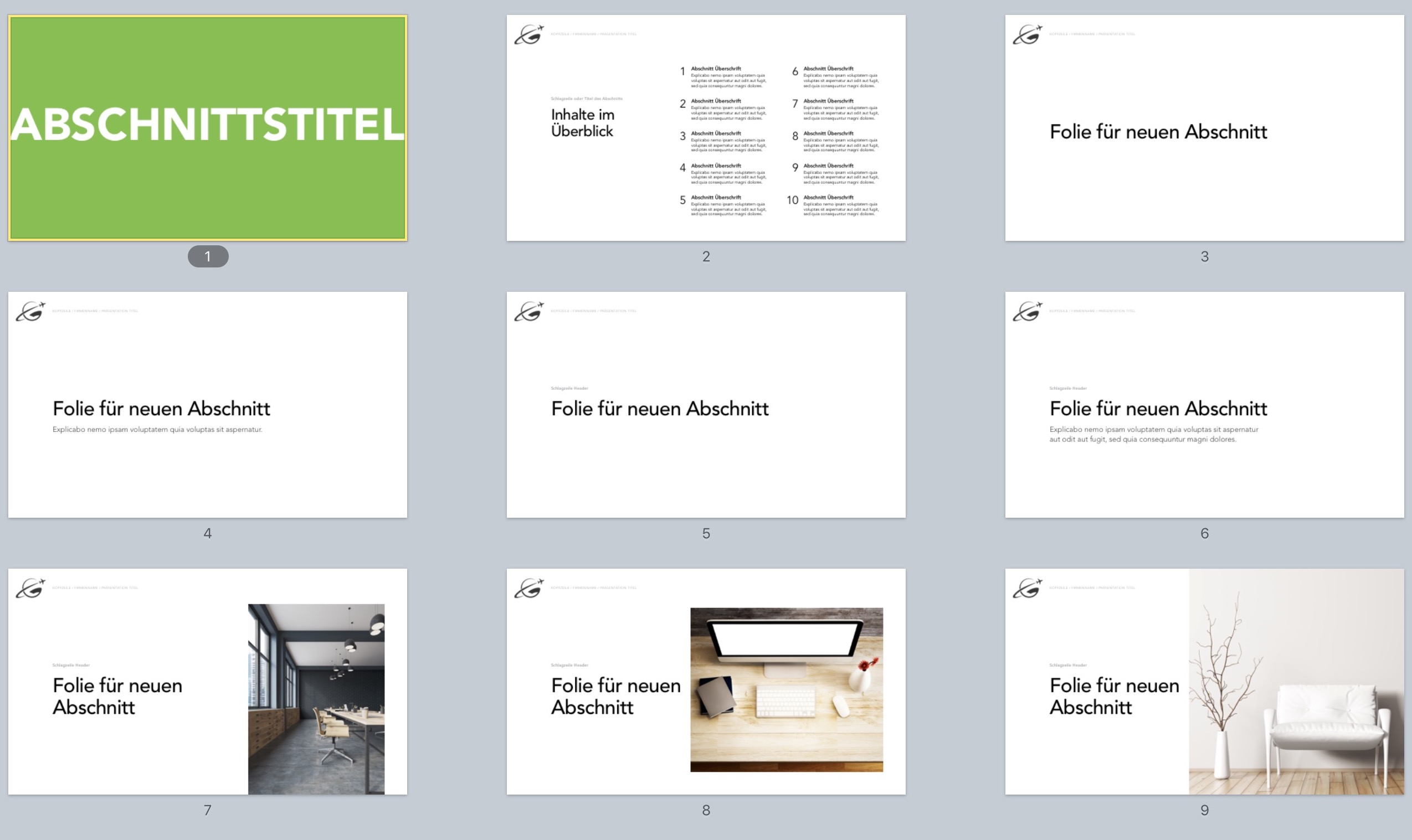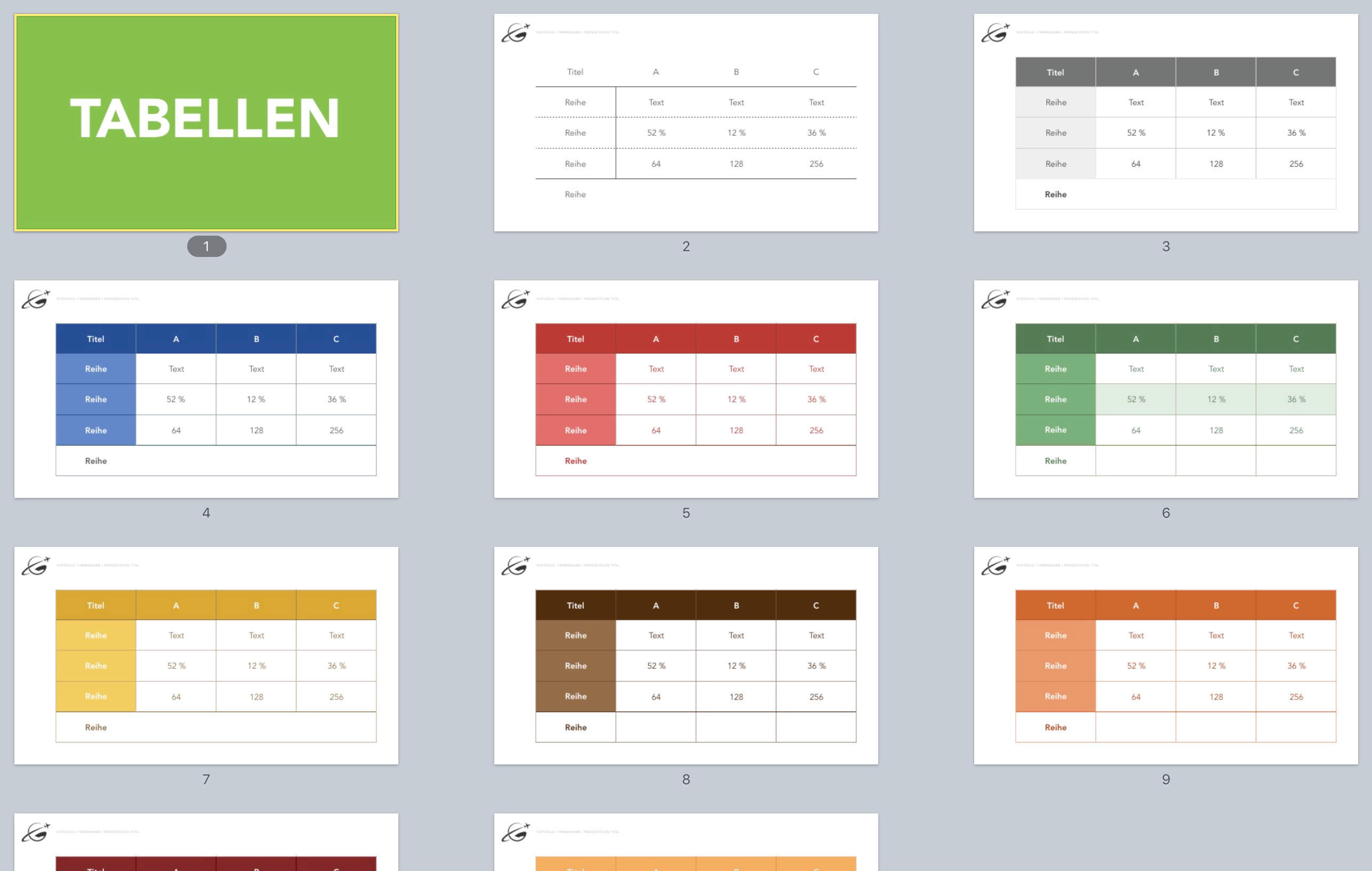 Die meisten Folienvorlagen sind in Varianten vorhanden sodass sie an den jeweiligen Bedarf ideal angepasst werden können.
