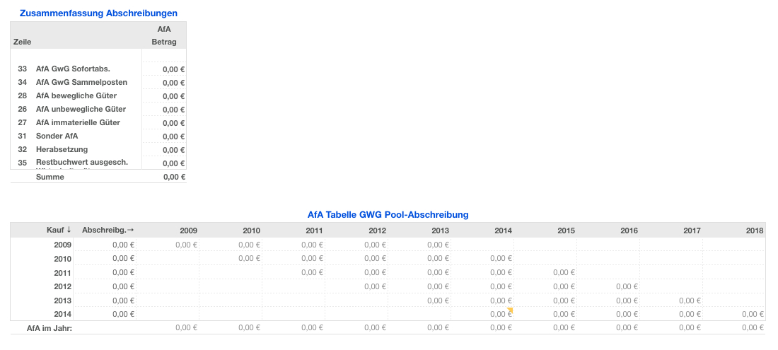 • Abschreibungen und Wirtschaftsgüterlisten