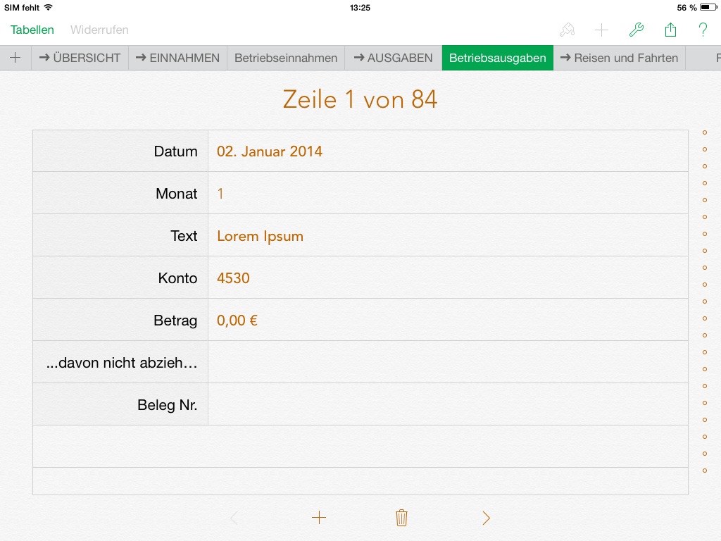 Für den Einsatz auf iPad stehen eigene Formulare für die Einnahmen, Ausgaben und Reisen zur Verfügung, um die Eingabe zu vereinfachen.