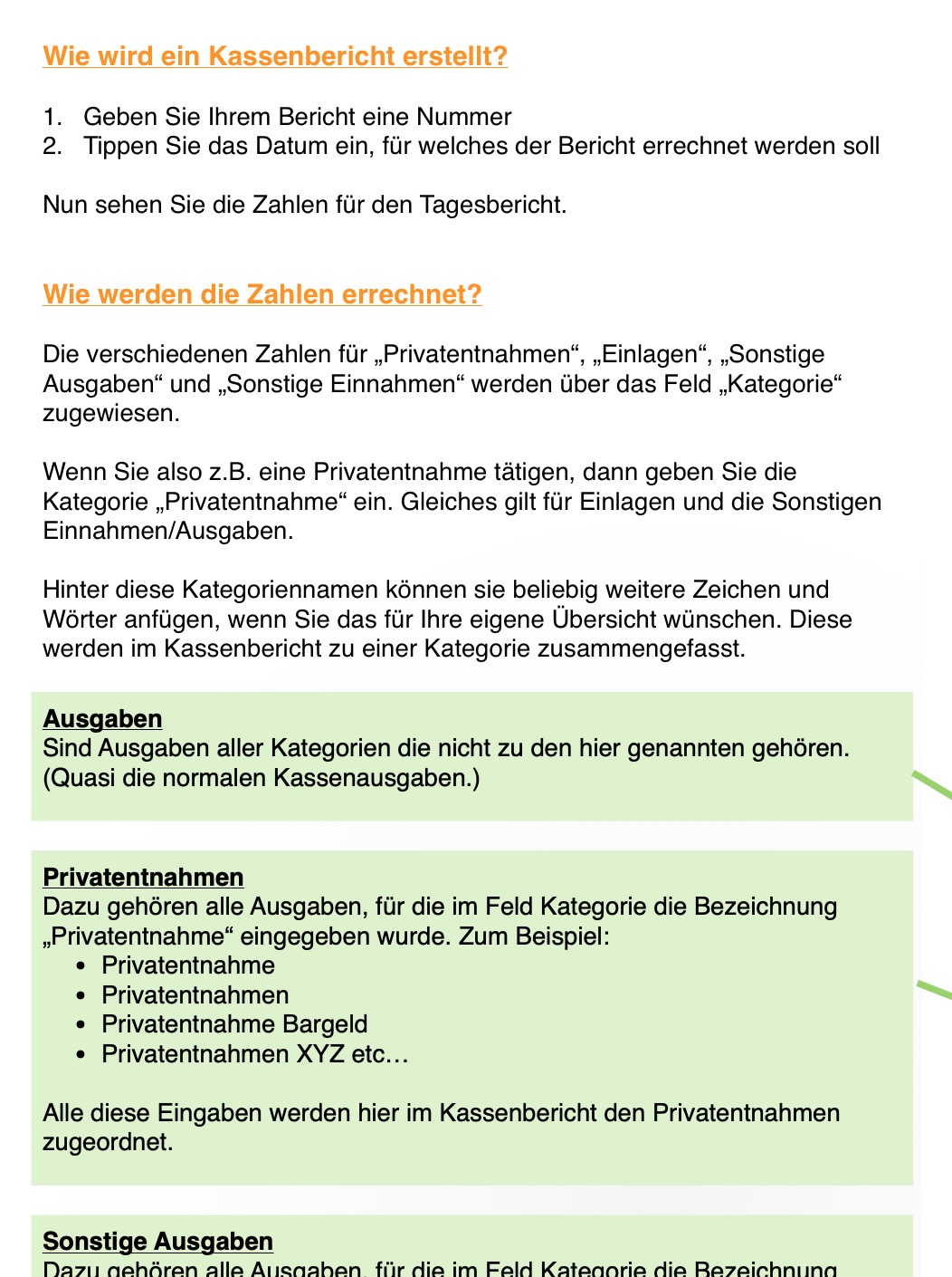 • Kassenbericht für jedes gewünschte Datum