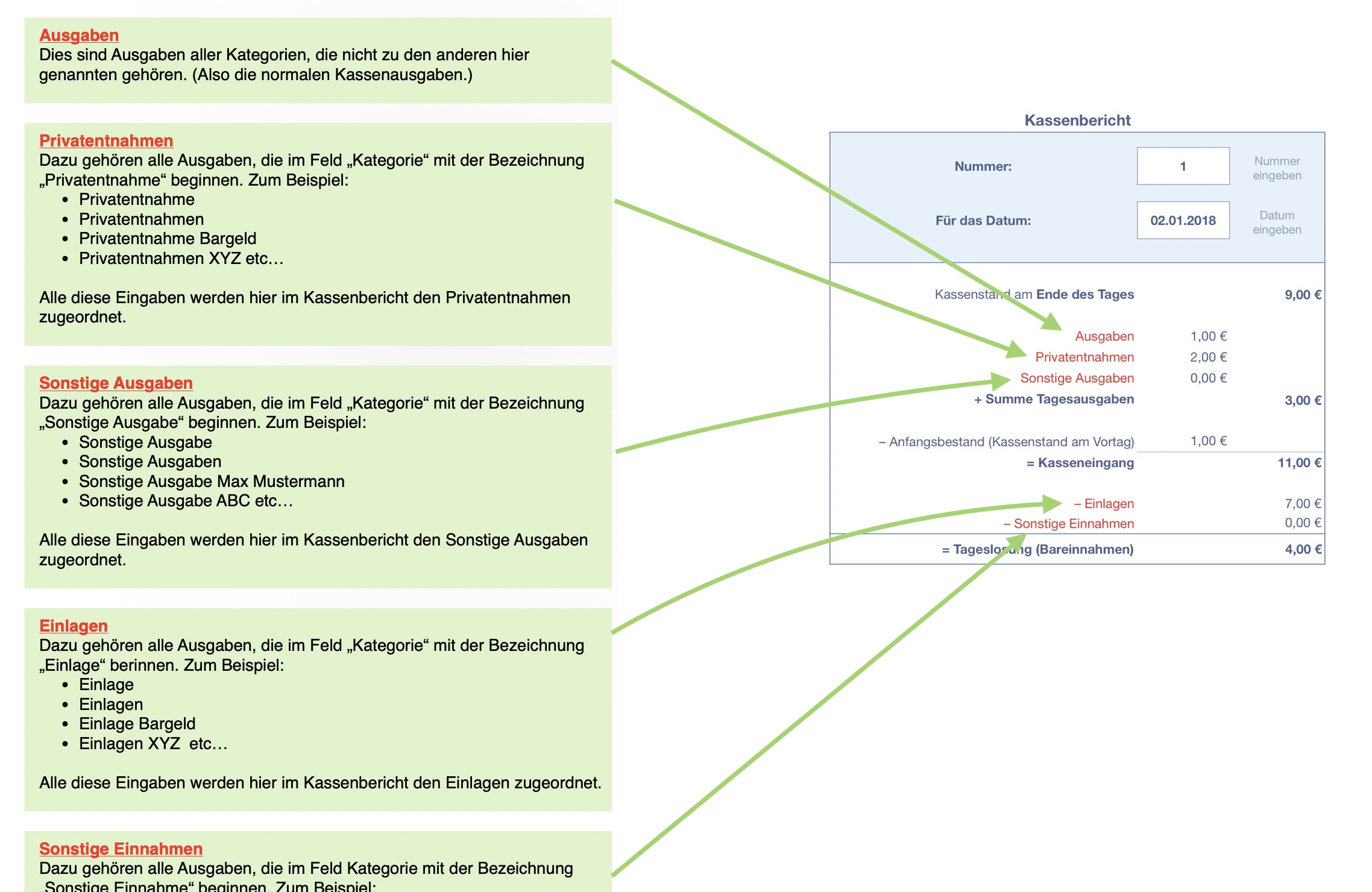 - Kassenbericht für jedes gewünschte Datum