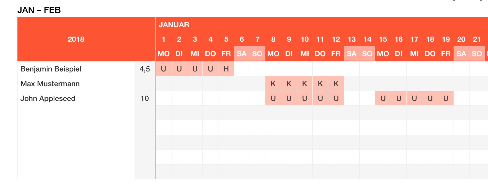 - Summe der Jahres-Urlaubstage übersichtlich dargestellt