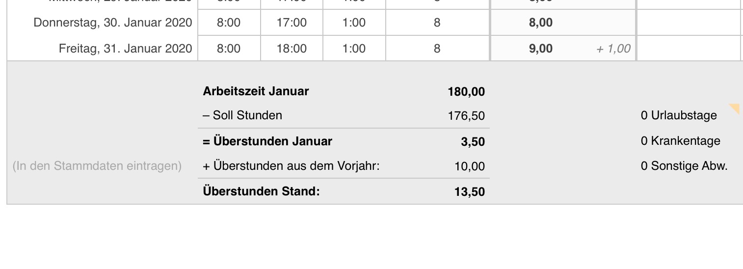• die seit Jahresanfang aufgelaufenen Überstunden (+ ggf. Überstunden aus dem Vorjahr)