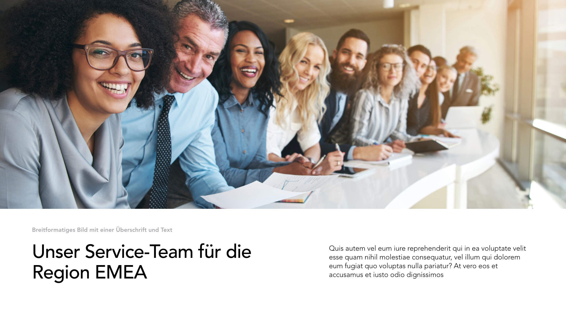 3. Titel + Schlagzeile + 4x Foto, Name, Position, Kurztext
