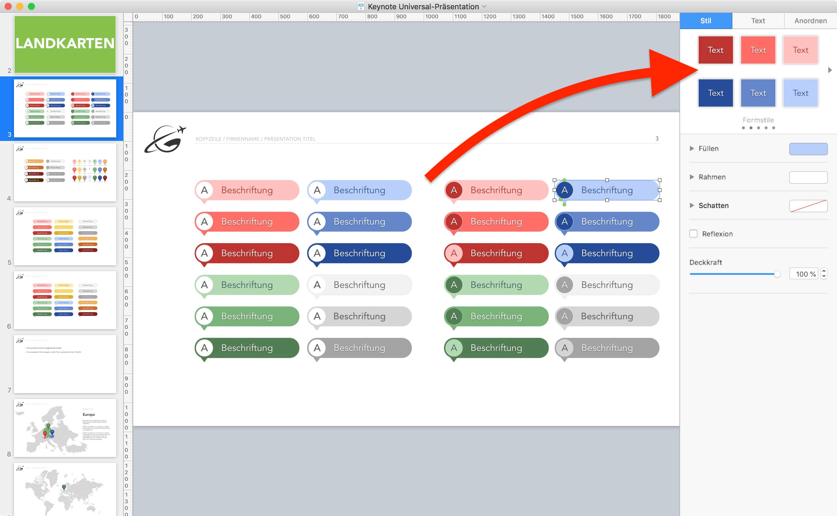 Die meisten Folienvorlagen sind in Varianten vorhanden sodass sie an den jeweiligen Bedarf ideal angepasst werden können.