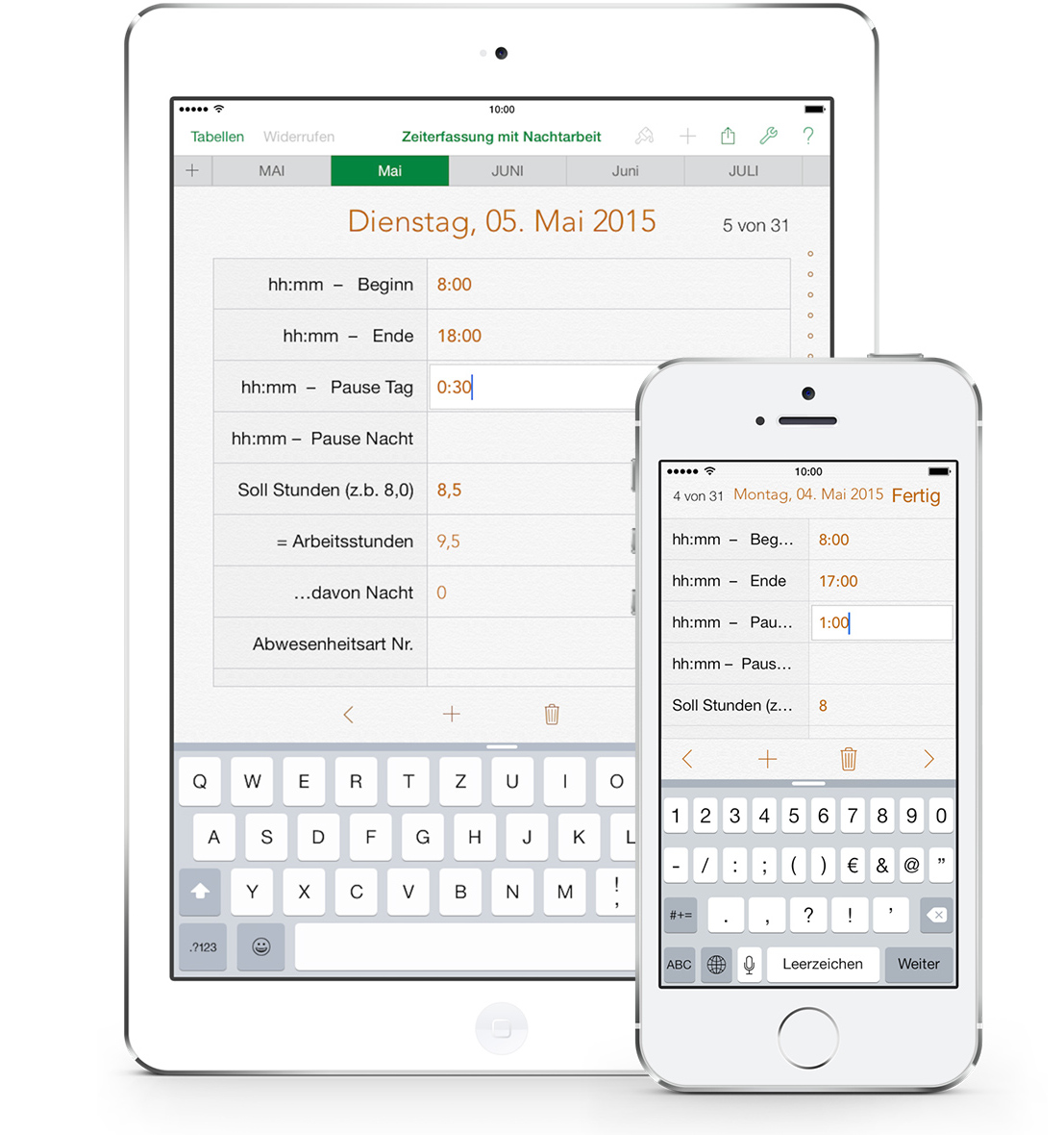 Auf dem iPad und iPhone können die Eingabeformulare zur einfacheren Bearbeitung genutzt werden. Mit iCloud können Sie Ihr iPad, iPhone und Mac synchronisieren.