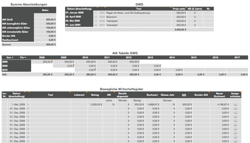 - Listen für GWG, bewegliche, unbewegliche und immaterielle Wirtschaftsgüter