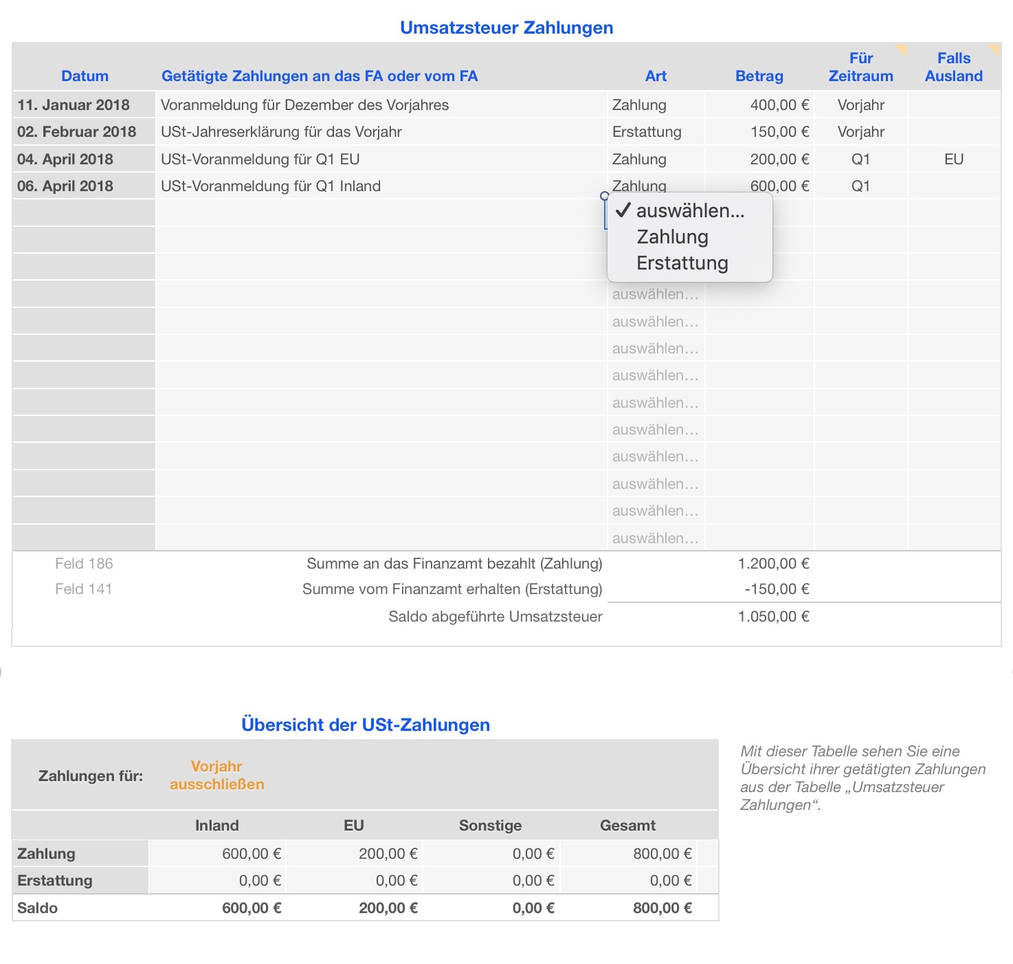 - Umsatzsteuer Zahlungen und -Voranmeldung mit Ausfüllhilfe für das Steuerformular