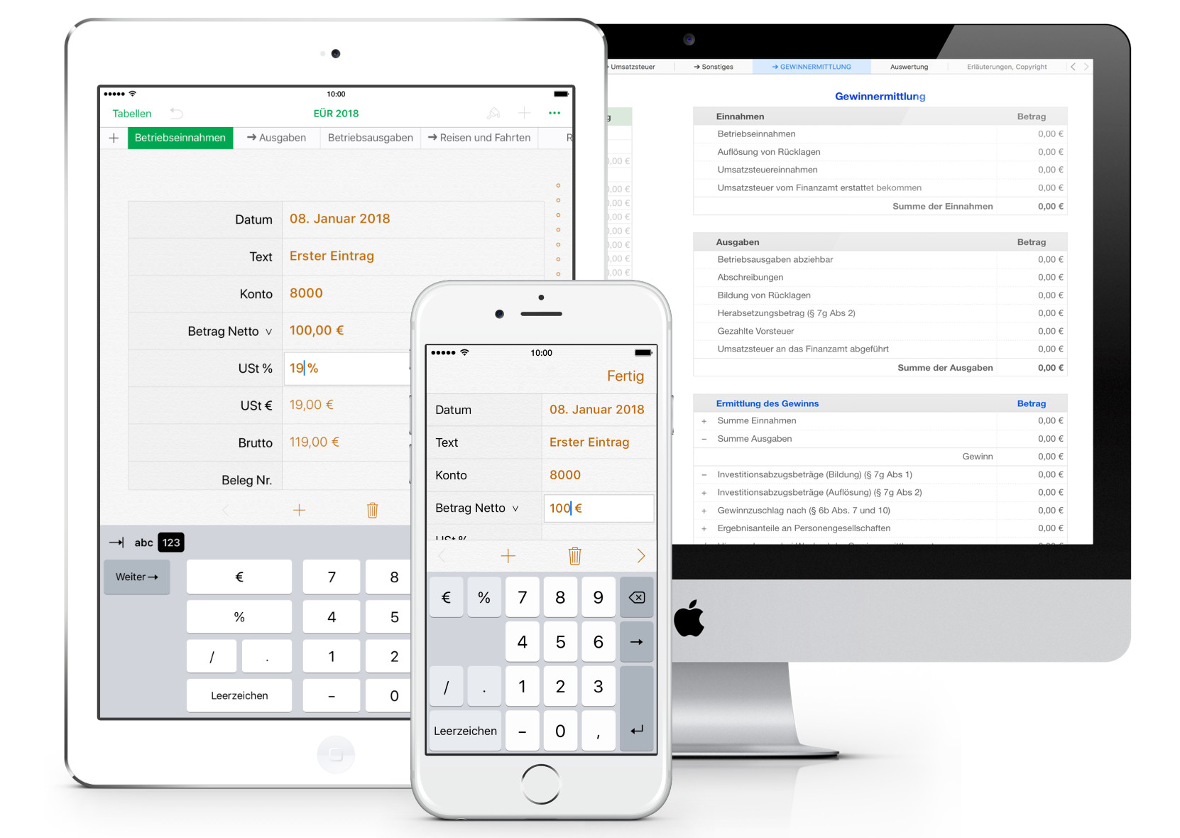 Beim Einsatz auf dem iPad und iPhone stehen zusätzliche Eingabeformulare für die Einnahmen, Ausgaben und Reisen zur Verfügung, wodurch die Eingabe erleichtert wird. Numbers auf dem iPhone oder iPad benötigt stets die aktuelle Version von iOS.