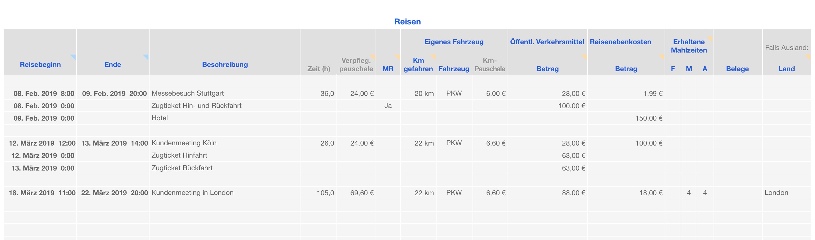 - Fahrt- und Reisekosten mit Berechnung der Verpflegungsmehraufwendungen (+ Eingabeformular auf iOS)