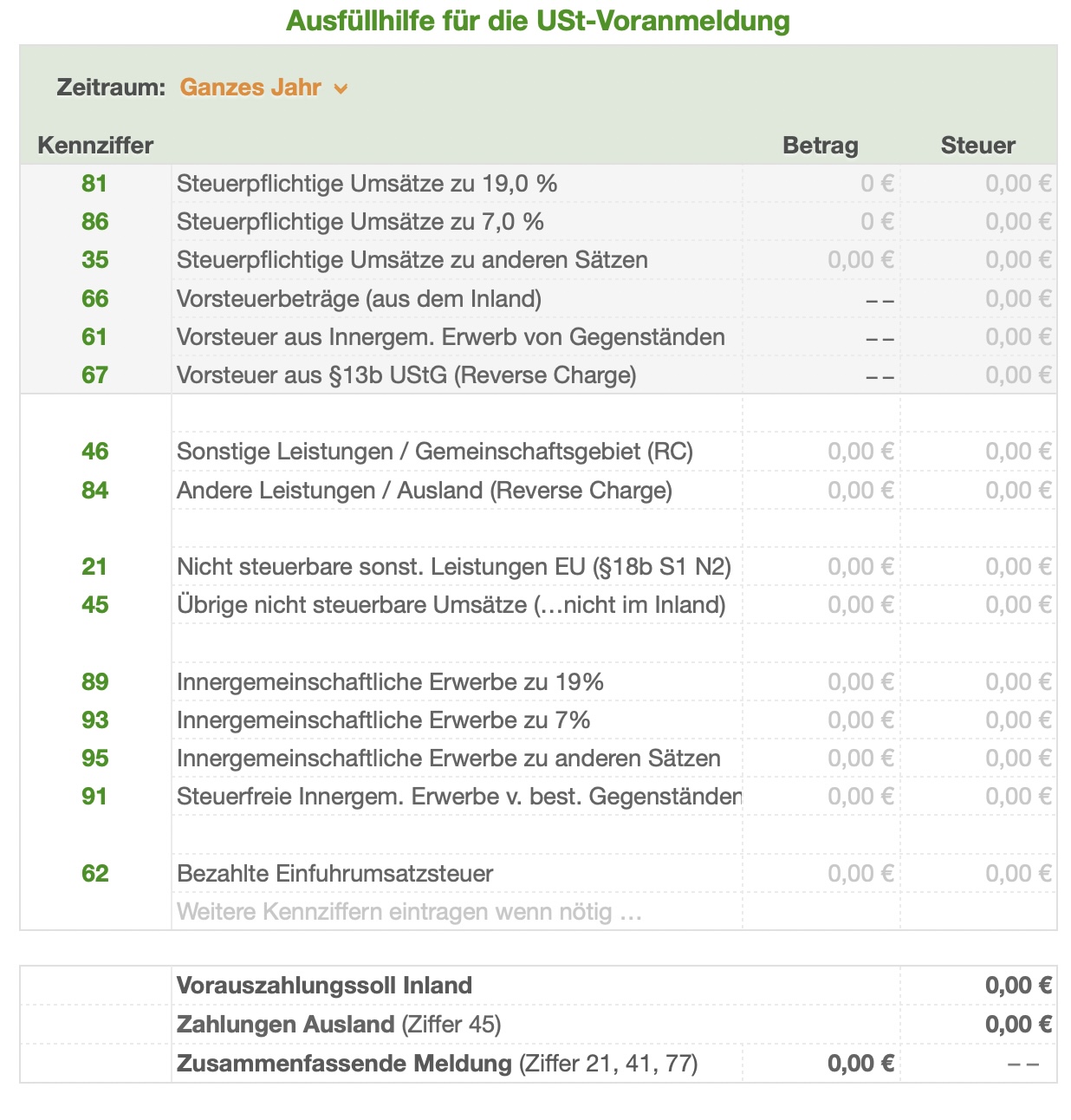 - Ausfüllhilfe für die Umsatzsteuer-Voranmeldung und Jahreserklärung mit den Kennziffern des Formulars