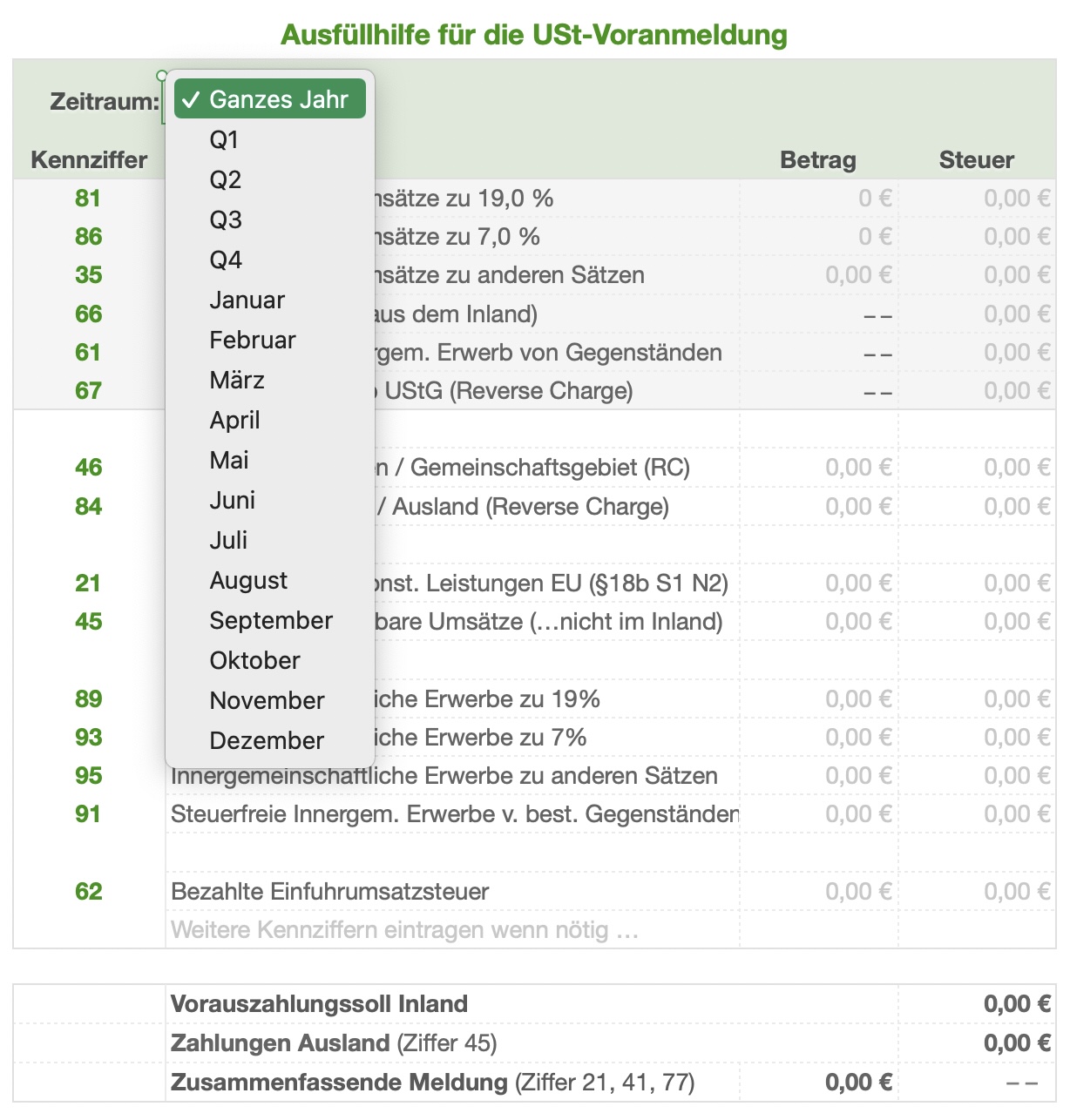 - Umsatzsteuer Zahlungen und -Voranmeldung mit Ausfüllhilfe für das Steuerformular