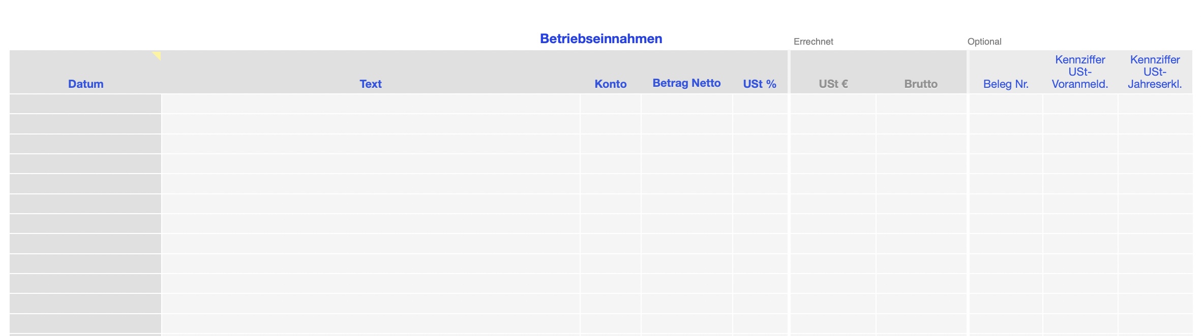 - Wahlweise Brutto oder Netto Eingabe in den Tabellen Betriebseinnahmen und Betriebsausgaben.