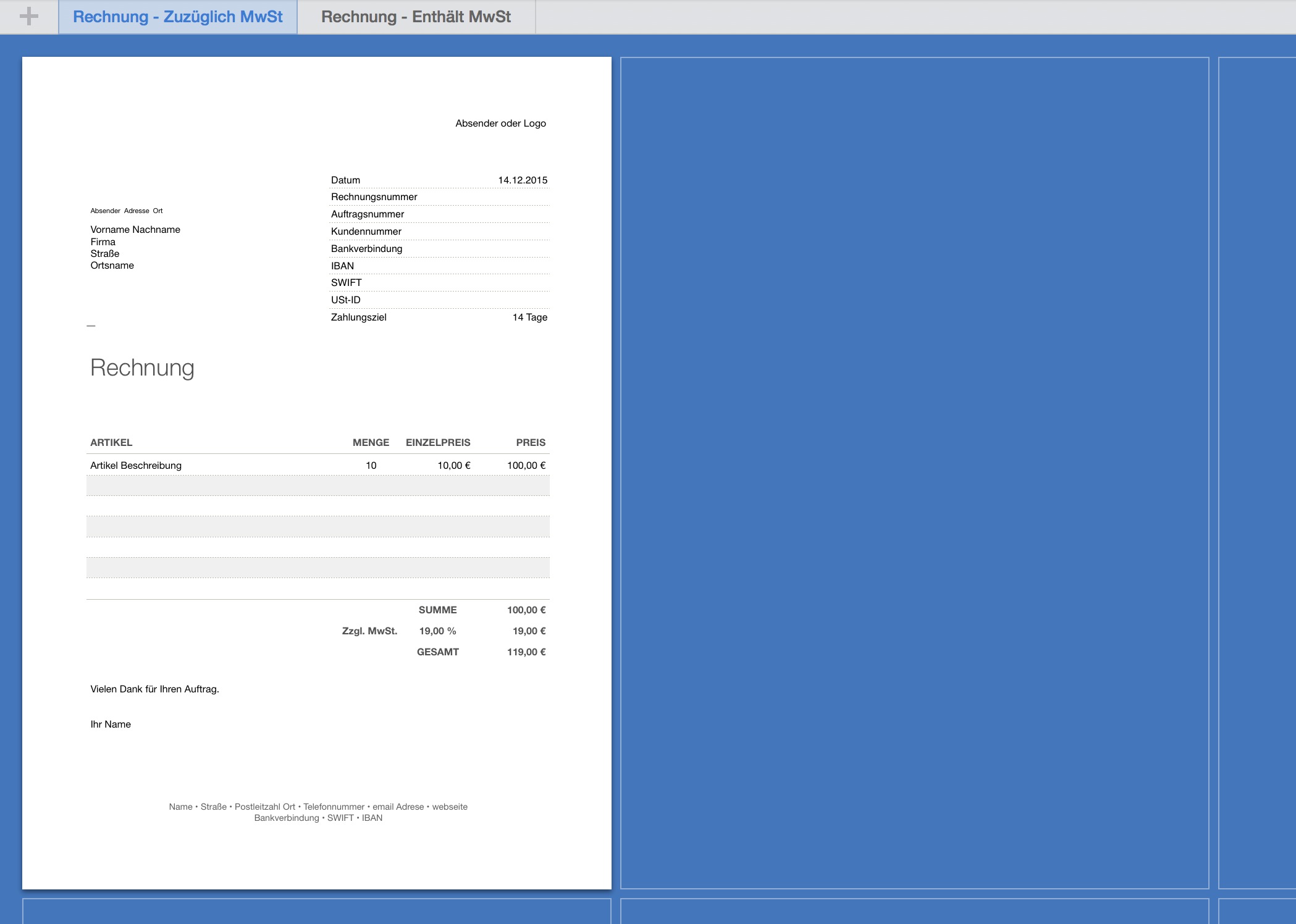 Wenn Sie zwei Steuersätze verwenden, können Sie auch die Rechnungsvorlage