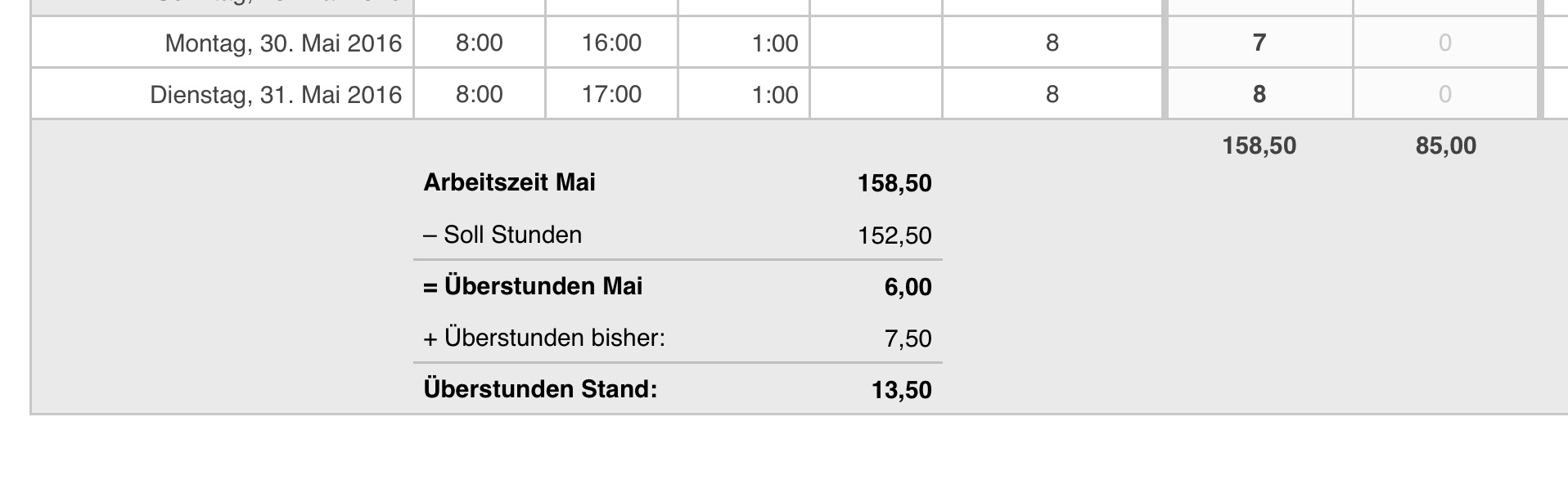 Um Überstunden abzubauen, vermerken Sie den Tag als Freizeitausgleichund tragen nur die Soll-Stunden ein.