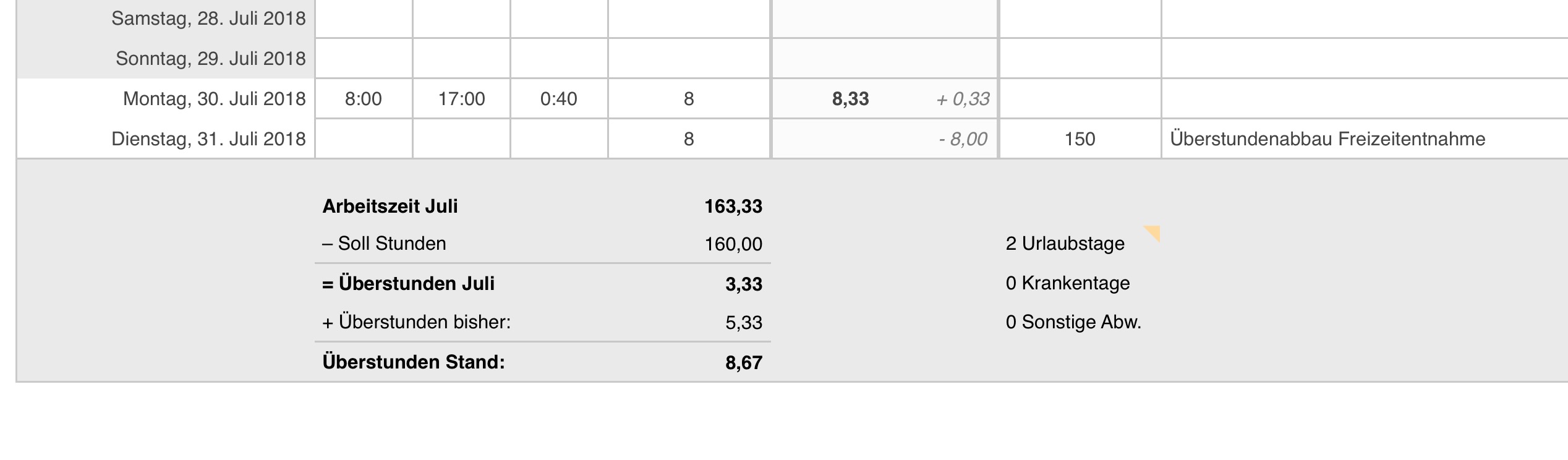 • die seit Jahresanfang aufgelaufenen Überstunden (+ ggf. Überstunden aus dem Vorjahr)