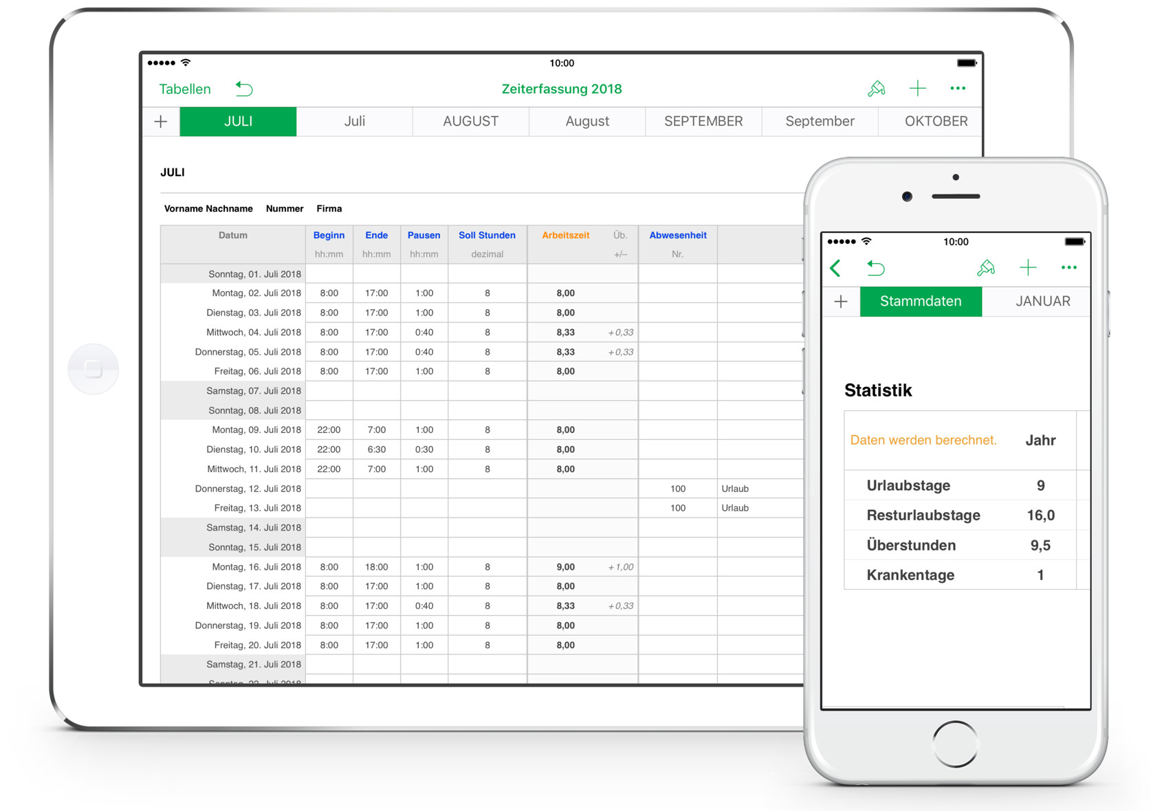Auf dem iPad und iPhone können die Eingabeformulare zur einfacheren Bearbeitung genutzt werden. Mit iCloud oder iCloud Drive können Sie jederzeit zwischen iPad, iPhone und Mac wechseln.