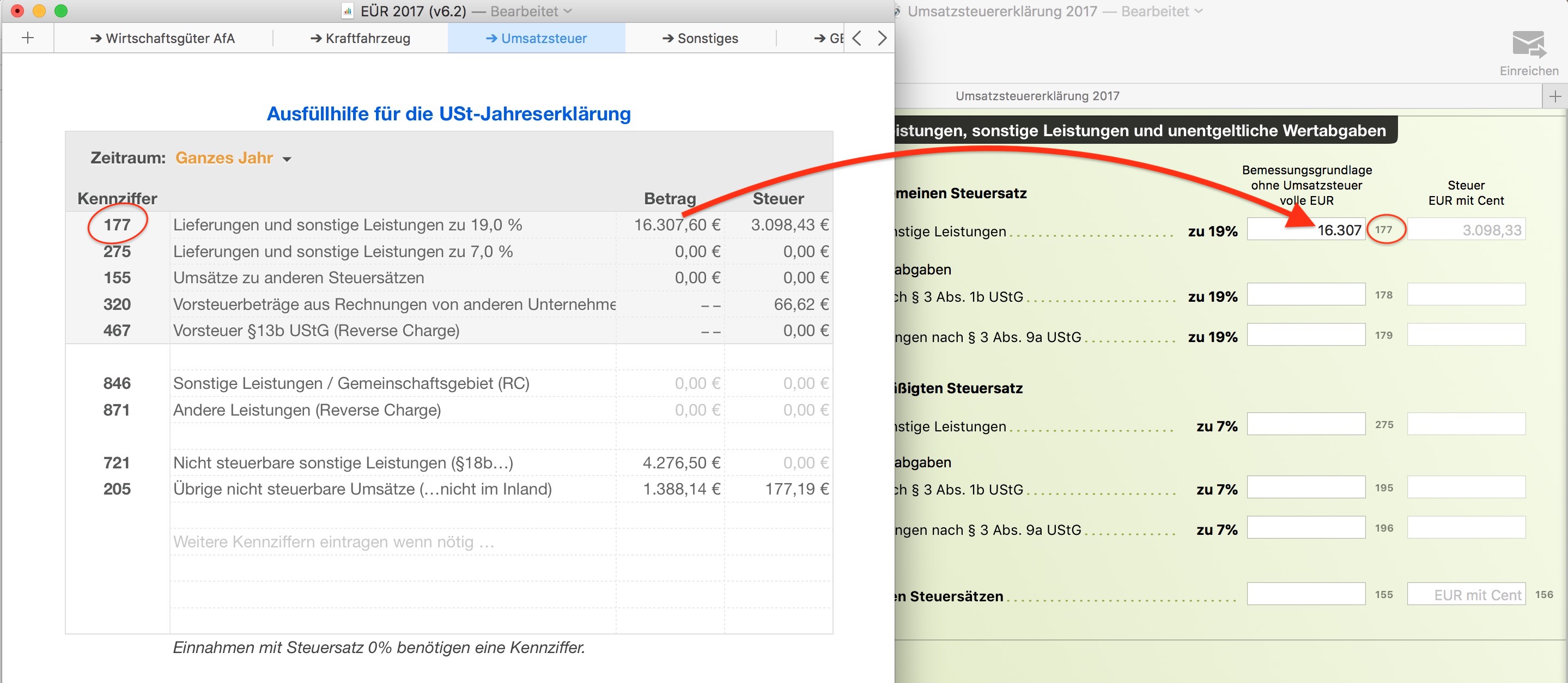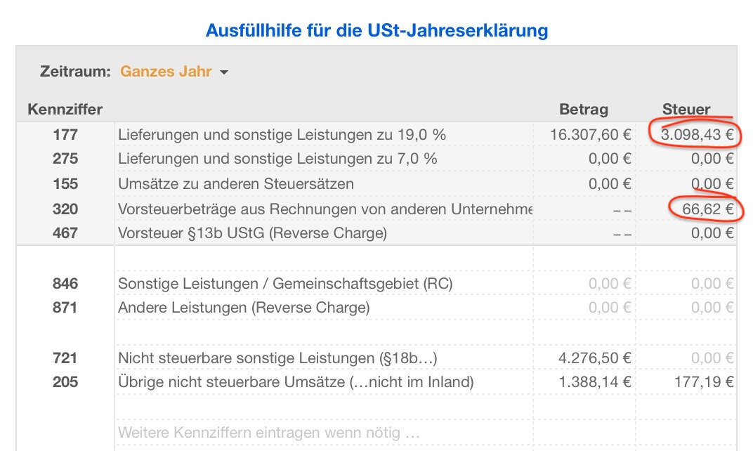 Wenn sich zwischen der Voranmeldung und dem Jahresabschluss nichts geändert hat, ist dies der selbe Betrag, den Sie zuvor in der Voranmeldung gemeldet haben.