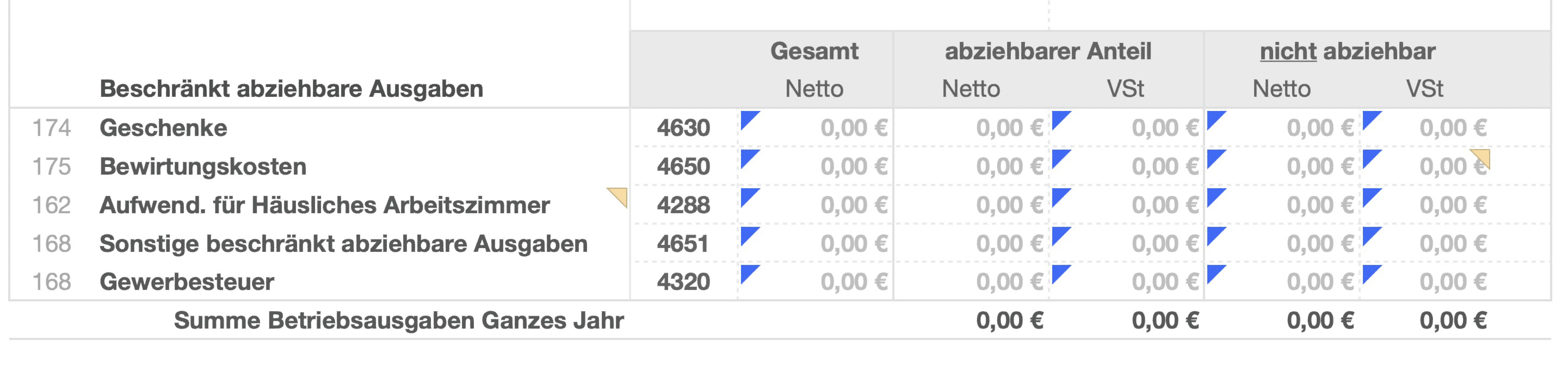 In bestimmten Situationen kommt es vor, dass Numbers Hinweise bzw. Warnungen ausgibt, und die betreffenden Zellen mit einem kleinen blauen Dreieck markiert. Je nach dem, welche Formeln verwendet werden, kann dies durchaus viele Zellen betreffen und überwältigend wirken. Beispielsweise kommt das vor, wenn man Tabellen aus Excel konvertiert oder in einem Numbers-Update neue Funktionen eingeführt werden.